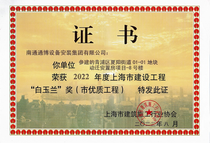 2022年度上海市市優(yōu)工程獎“白玉蘭”評選中,天津分公司參建的青浦區(qū)夏陽街道01-01地塊動遷安置房項目,通過了上海市專家組的復(fù)查,獲得了2022年度上海市優(yōu)質(zhì)工程“白玉蘭”獎項。獲得該殊榮再次證明天津分公司在工程施工管理、過程質(zhì)量控制等方面均達(dá)到行業(yè)領(lǐng)先水平。